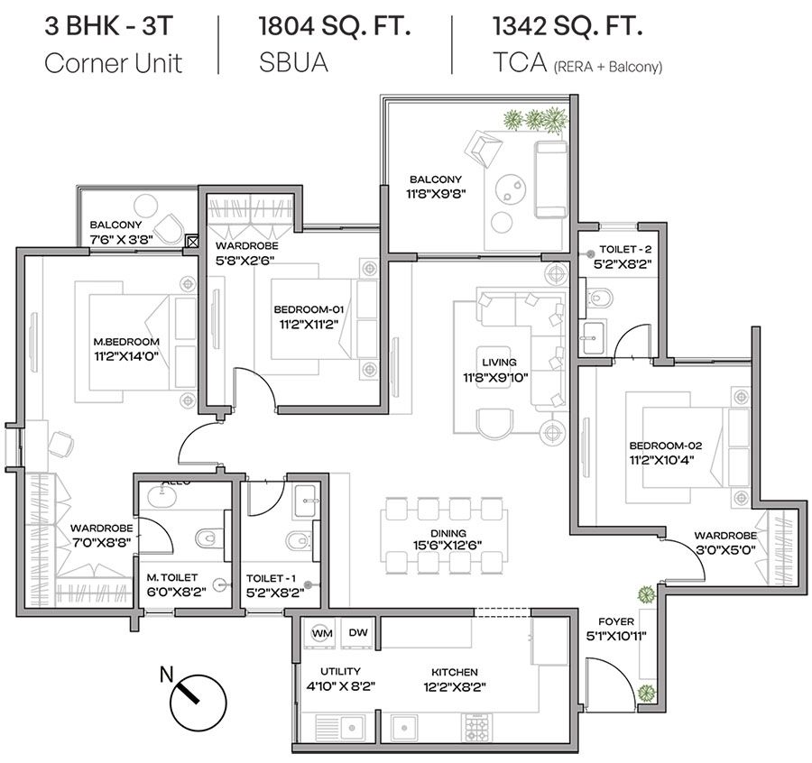 Every apartment is Vaastu compliant. The apartment has been consciously sized for convenient family living, the room dimensions are sensible and designed to maximize usable area while minimizing circulation space.