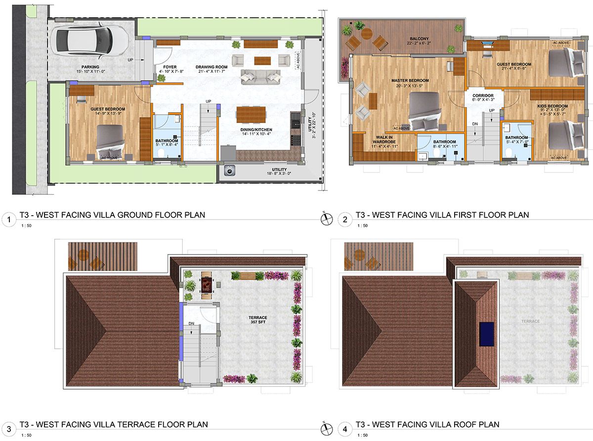 Every villa is Vaastu compliant. The villa has been consciously sized for convenient family living, the room dimensions are sensible and designed to maximize usable area while minimizing circulation space.