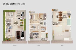 Every villa is Vaastu compliant. The villa has been consciously sized for convenient family living, the room dimensions are sensible and designed to maximize usable area while minimizing circulation space.
