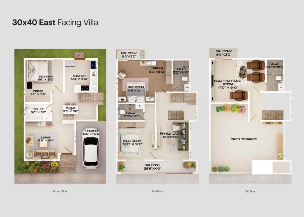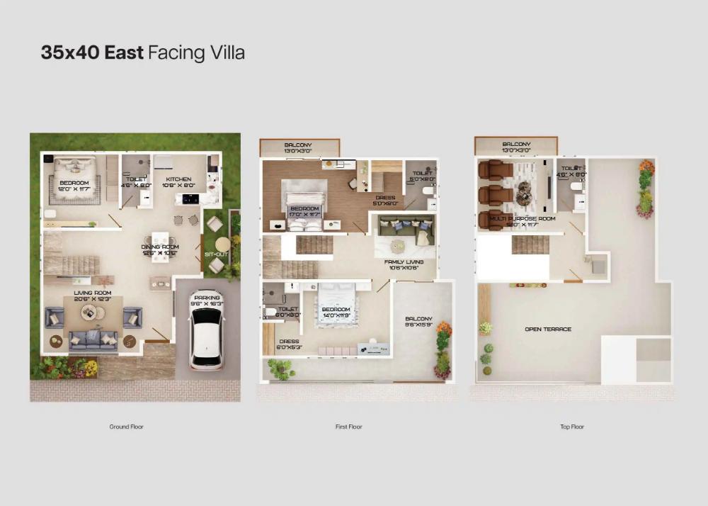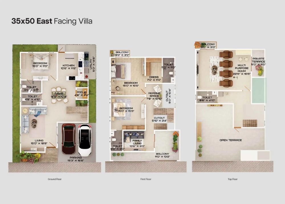 Every villa is Vaastu compliant. The villa has been consciously sized for convenient family living, the room dimensions are sensible and designed to maximize usable area while minimizing circulation space.